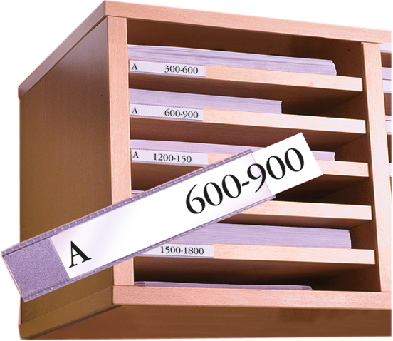 Ideal für Archivschränke, Lager- und Büroregale, Briefablagen und Schubladen. Die Beschriftungsfenster können leicht mit einer Schere auf das passende Format zugeschnitten werden und sind einfach zu beschriften. Erhältlich in 6 verschiedenen Formaten.