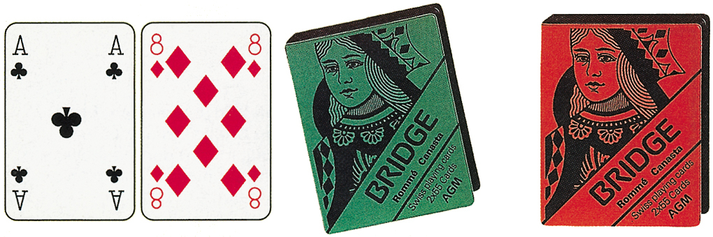 Das Bridge Doppel-Set enthält 2 x 55 Karten mit englischen Eckbezeichnungen.