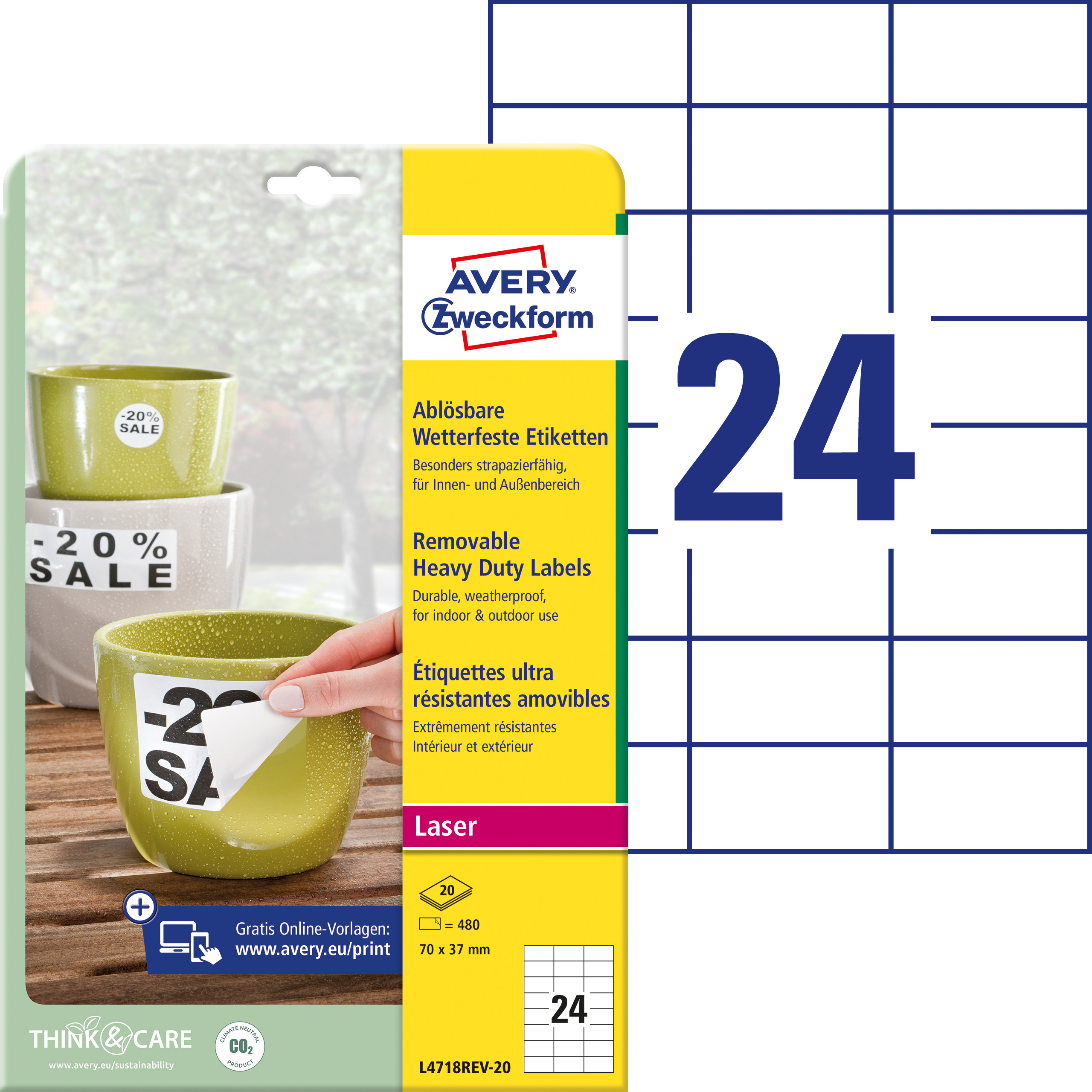 AVERY ZWECKFORM Etiketten Laser 70x37mm L4718REV2 weiss,wetterfest,ablösbar 20B.