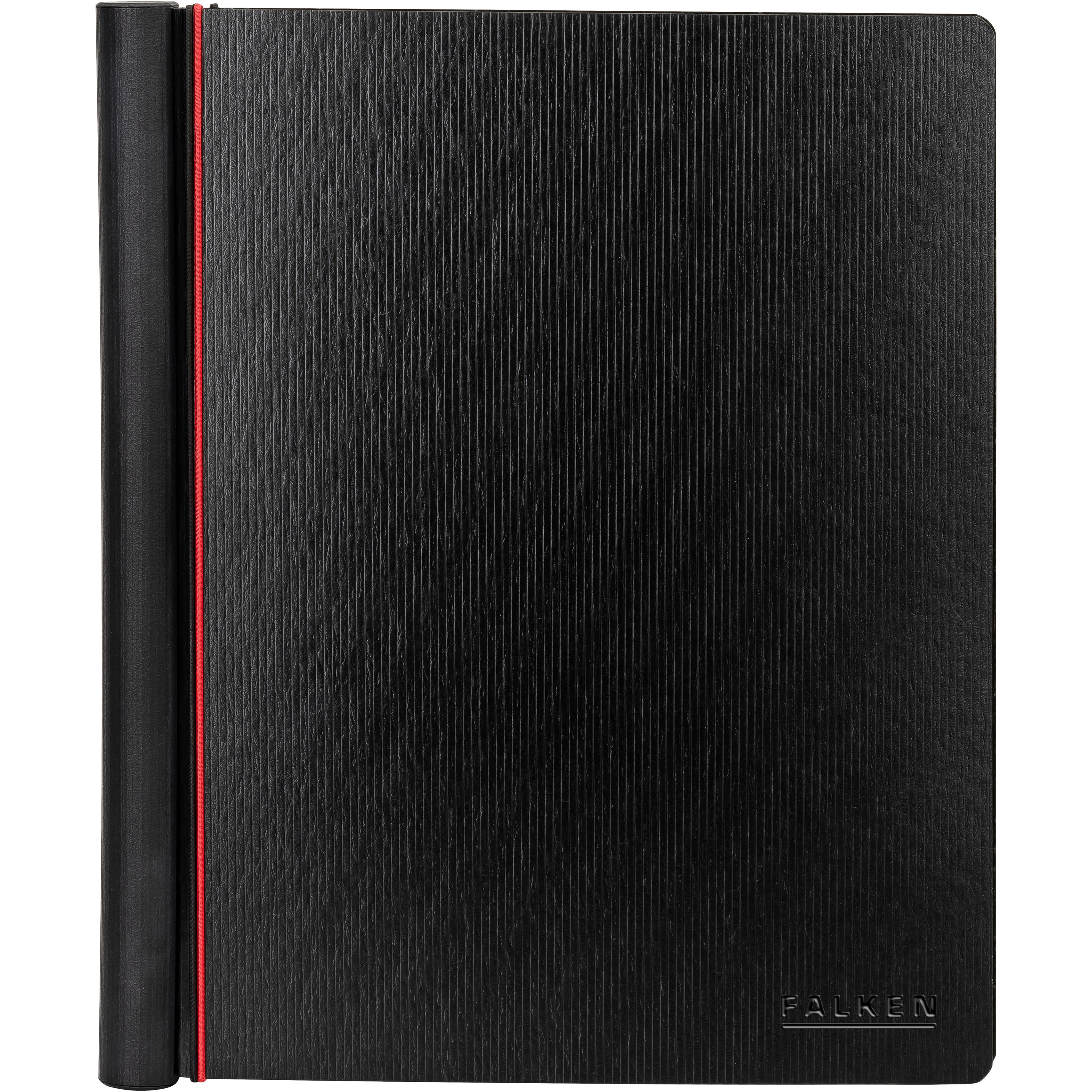 Chormappe aus hochwertiger schwarzer Pappe mit eleganter Nadelstreifenprägung aussen. Mit ergonomischem Haltegriff an der Rückseite und einer 2 Ring Mechanik sowie 4 Verschluss- und Haltegummis zur Sicherung der Notenblätter. Innen mit zwei Kunststofftaschen an den unteren Ecken, 360g leicht, FSC® zertifiziert ISBN 978-3-00-080949-1.