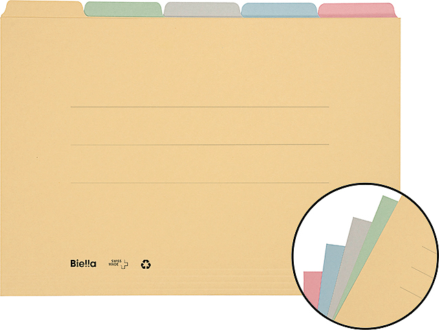 Mit der praktischen 5-teiligen Registermappe von BIELLA ist eine optimale Organisation innerhalb einer ORIGINAL®-Hängemappe garantiert. Mit ihren 5 verschieden farbigen Mappen und ausgerüstet mit versetzten Registertaben, finden Sie Ihre Unterlagen mit einem Griff. Die einzelnen Mappen sind optimal als Teilprojekte-Mappen geeignet, universell einsetzbar und schaffen Ordnung und Übersicht. Der zurückgeschnittene Vorderdeckel vereinfacht die Entnahme der Dokumente. Die Mappen sind mit 3 Beschriftungslinien und 5 Rillen ausgestattet.