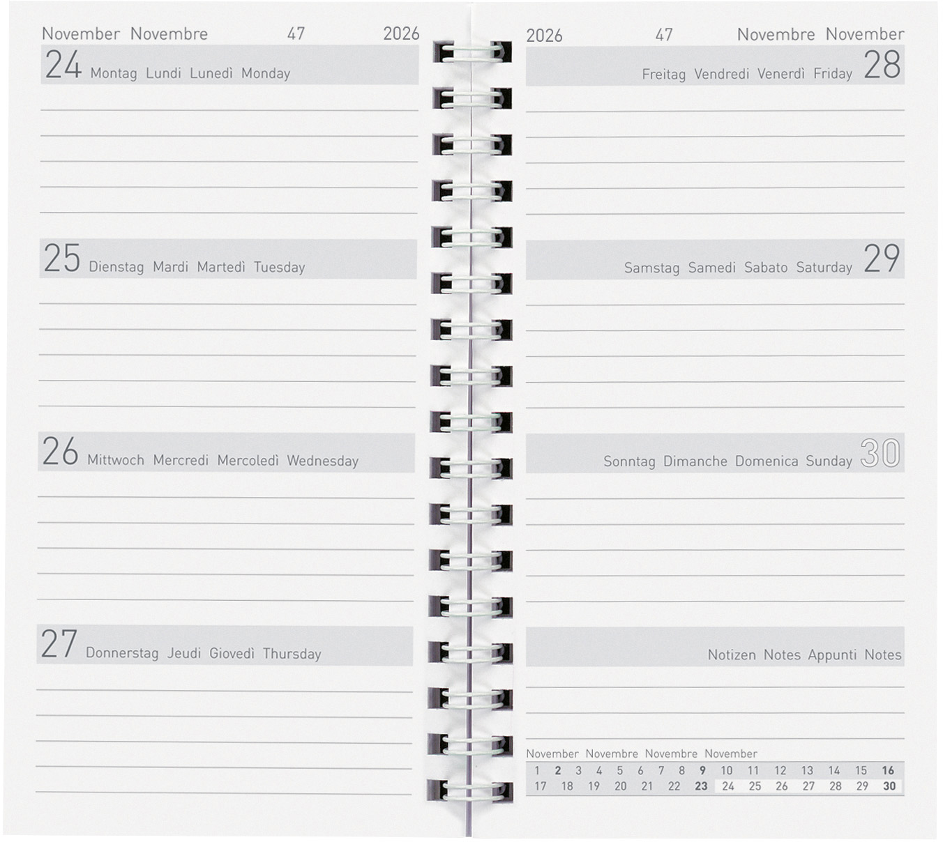 - Kalendarium d-f-i-gb, Druck grau, Zweifarben-Optik