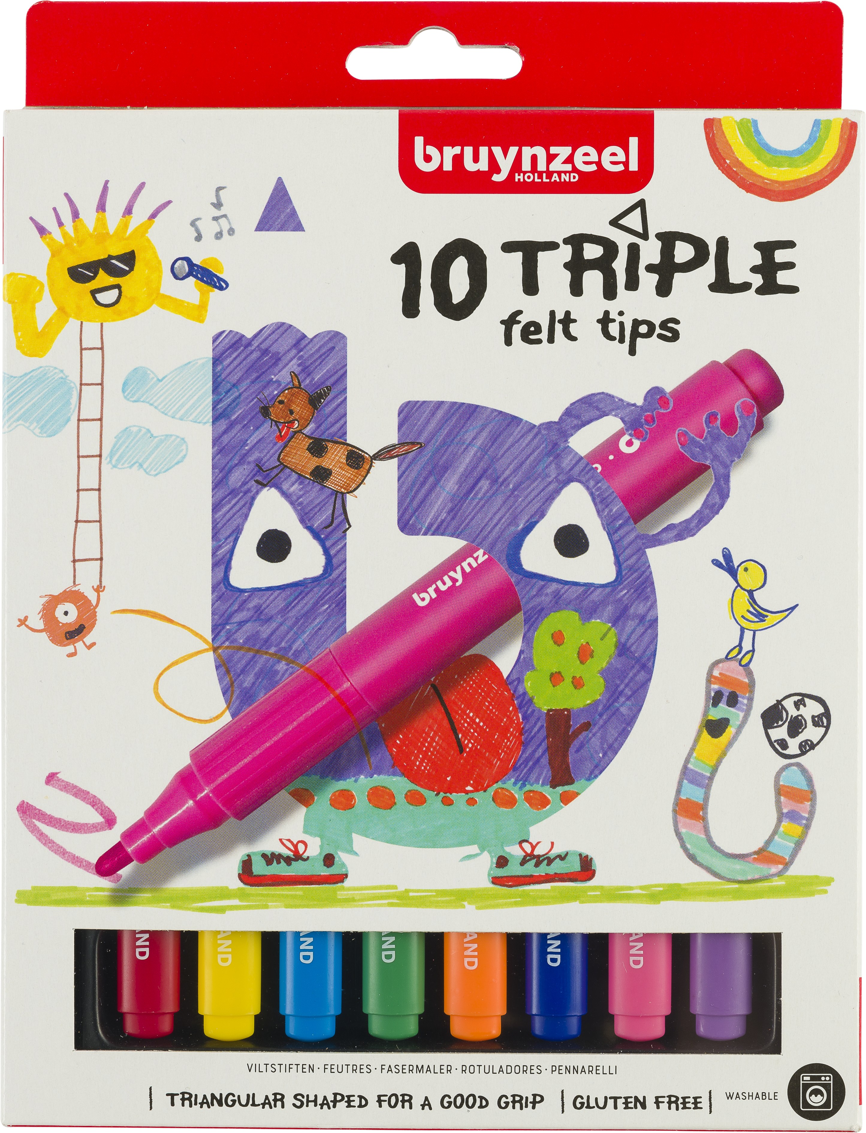 BRUYNZEEL Fasermalerset Kids Triple 60123010 dreieckig, 10 Farben