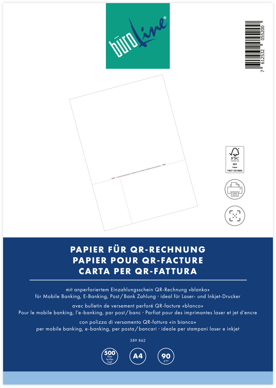 Optimale Blanko-Formulare für das Drucken von Rechnungen mit dem Swiss QR-Code. Geeignet für Laser- und Inkjetdrucker.