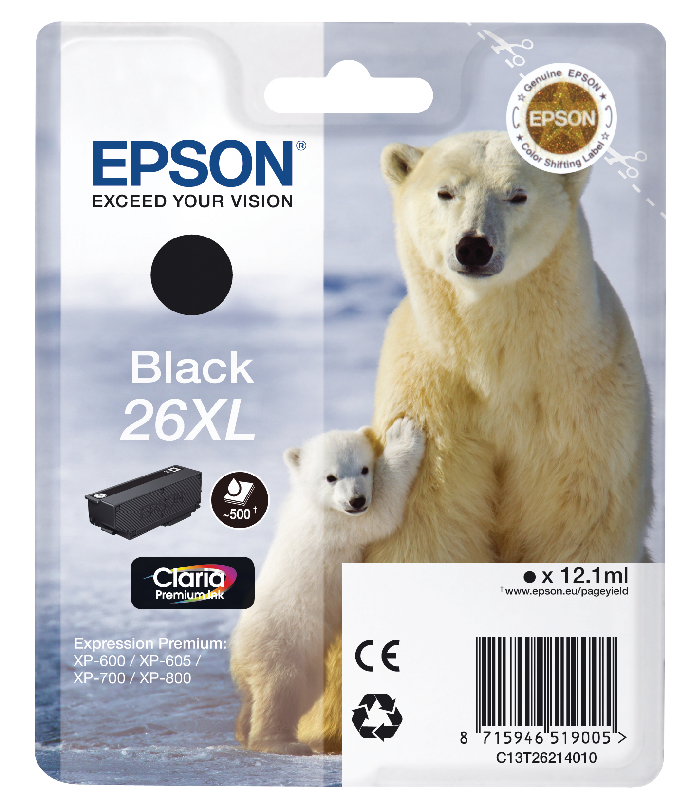 EPSON Tintenpatrone 26XL schwarz T262140 XP 700/800 500 Seiten