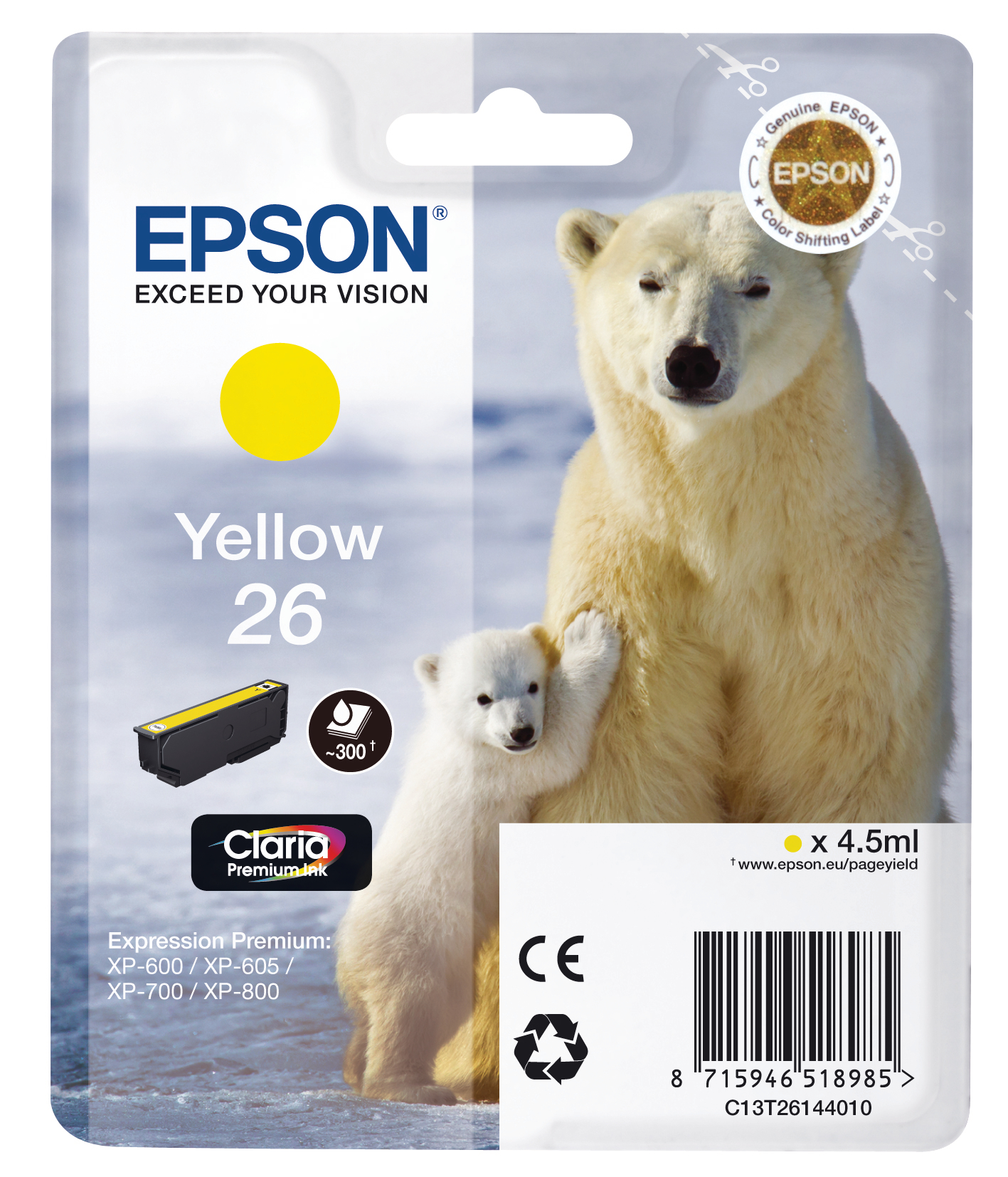 Produktinformationen "EPSON Tintenpatrone yellow T261440 XP 700/800 300 Seiten"